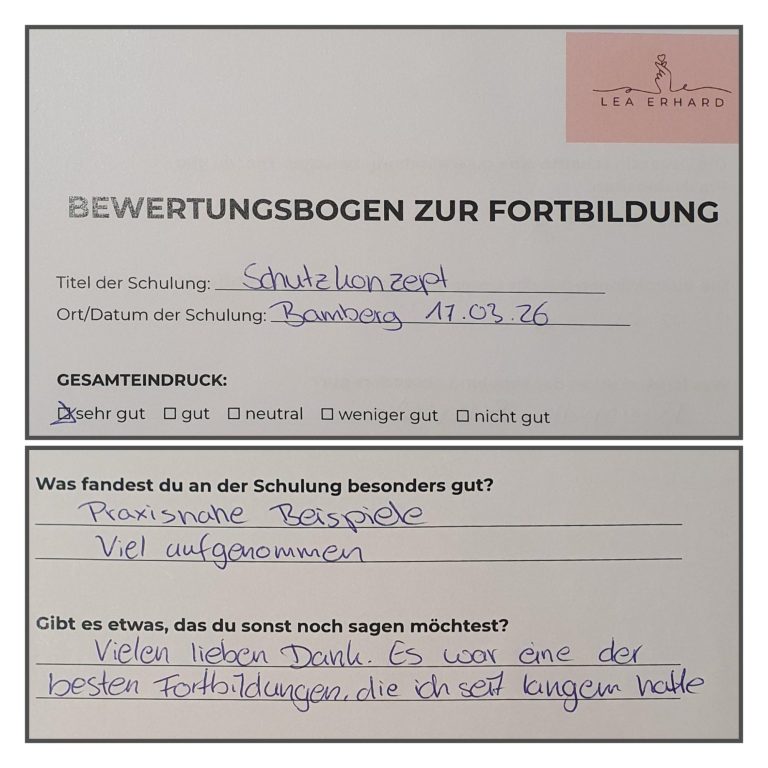 "Gute Ergänzung/ Erweiterung/ Erfrischung meines Wissensstandes zum gewissen Thema. Vielen Dank für die informative Fortbildung"